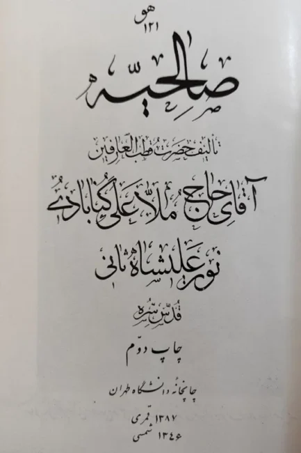 به نام فرزند برومند خود حضرت صالحعلیشاه مرقوم و مشتمل بر خلاصهای از اسرار شریعت و اطوار طریقت و لطائف حقیقت و مجموعهای از مطالب عرفانی، حکمی و کلامی است که در نوع خود کم نظیر و بلکه بینظیر است.